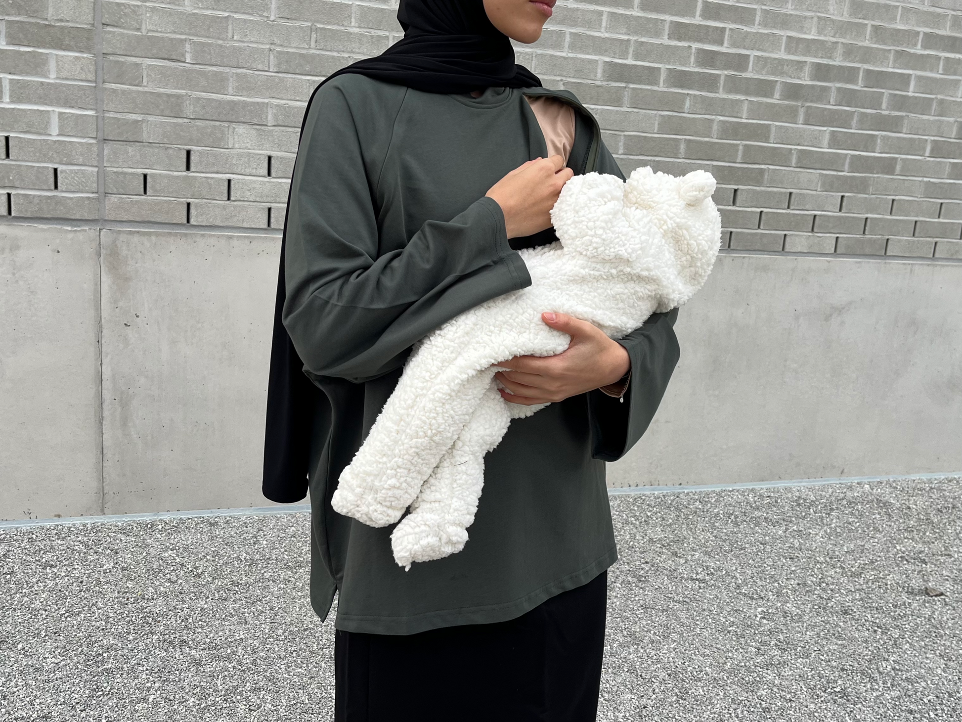 Le haut Hilel, pensé pour les nouvelles mamans, combine confort et praticité pour alléger votre quotidien. Avec son ouverture discrète, il vous permet d’allaiter sereinement où que vous soyez, en vous offrant une totale liberté de mouvement.